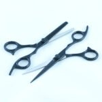 High Quality Barber Scissors Set Razor Scissors Blade Produce in High Carbon Stainless Steel size 6.5 inch Black Powder Coated Color with Black Finger Rest.