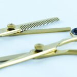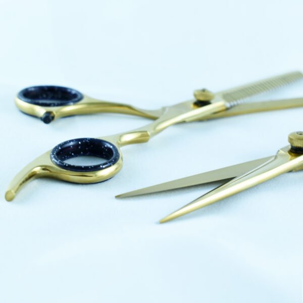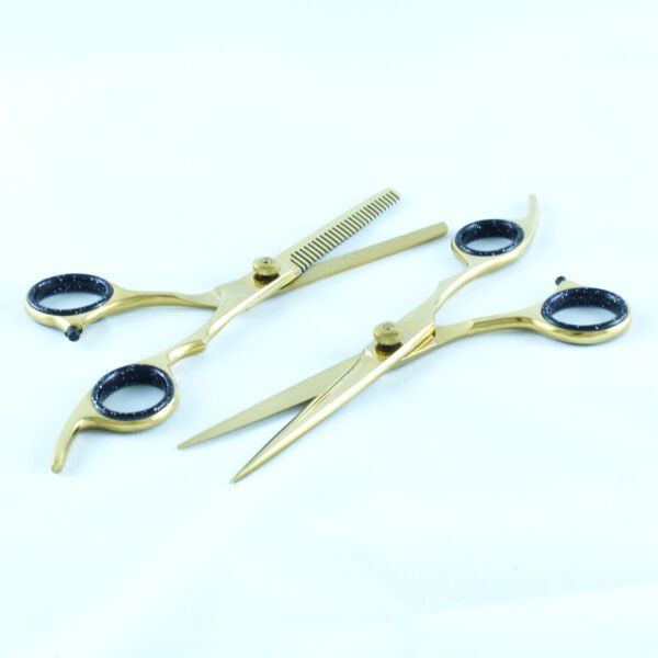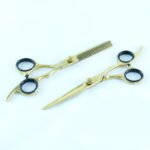 High Quality Barber Scissors Set Razor Scissors Blade Produce in High Carbon Stainless Steel size 6.5 inch Gold titanium color with Black Finger Rest.